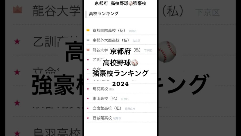 京都府 高校野球⚾️強豪校ランキング2024(独自) #高校野球 #京都府