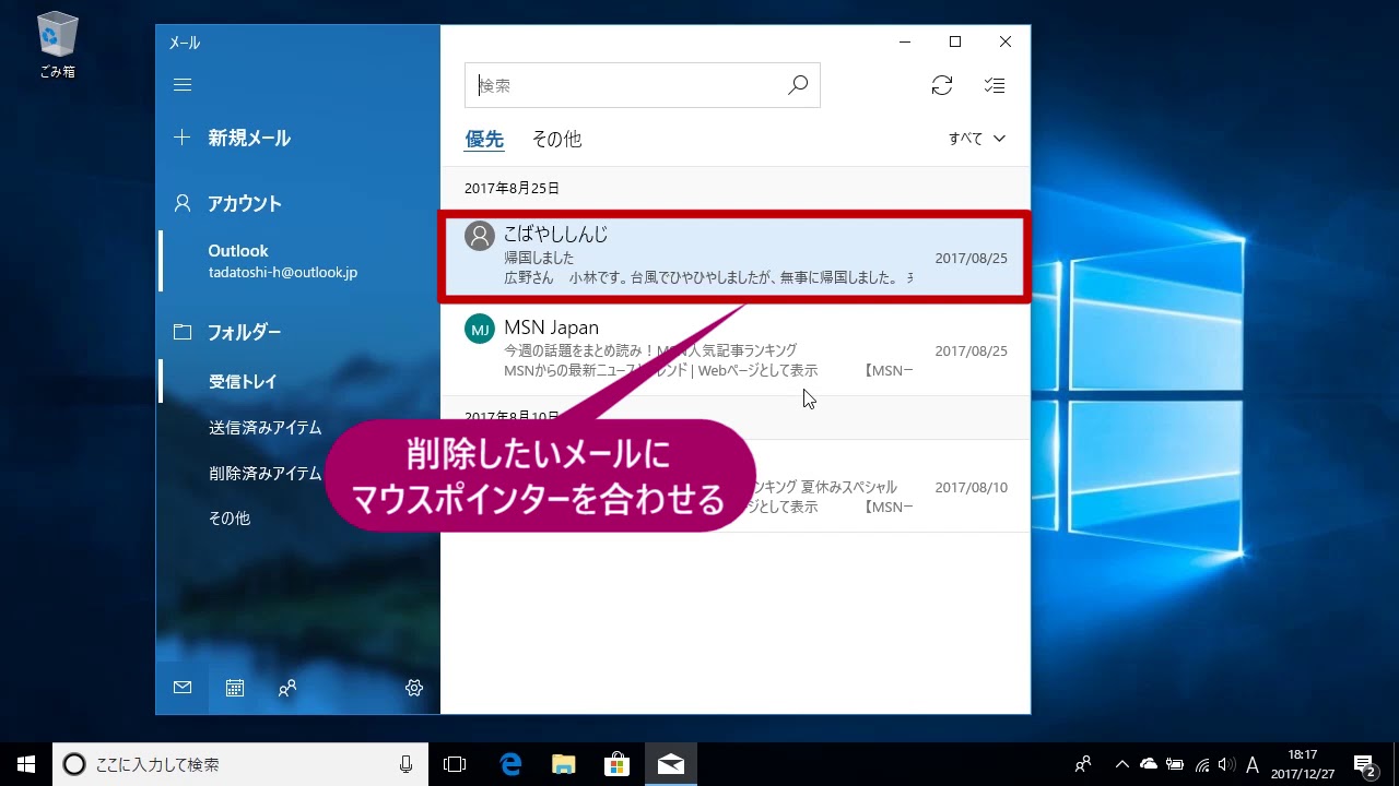 受信トレイからメールを消すには(Windows 10) 2025 10/10 テニス October 10, 2025 この動画の解説記事:https://dekiru.net/article/16034/ 用事が済んだメールは受信トレイから消しましょう。[アーカイブ]フォルダーに保存します。 テニス outlook 予定表 削除できない Let's share this post ! Copied the URL ! Copied the URL ! 祖父に⚫︎女奪われ…/27歳で発覚 知的障害/知能レベル9歳で子育て フジテレビ斉藤舞子アナの撮影密着 フジテレビ×モデルプレス「女子アナの素っぴん」 Author of this article wpauser4Wno9mvi 関連記事 舛田コーチの全力スマッシュをレシーブする小学2年生!! October 9, 2025 [笑神様は突然に]女優のオープニングw October 9, 2025 モーニング娘。オーディションに落選していた早見あかりさん(元ももクロ) October 9, 2025 金子 真大/齋藤 駿(トナミ運輸)vs 松居 圭一郎/玉手 勝輝(日立情報通信エンジニアリング)MD準々決勝【ランキングサーキット 2025】 October 9, 2025 【青汁王子 脱税】逮捕後の拘置所生活がマジで地獄だった。。【三崎優太/青汁王子切り抜き】 October 9, 2025 五輪代表に内定したスポーツクライミング・森秋彩選手に握力を測ってもらいました #Aimori #ボルダリング #climibing #bouldering October 8, 2025 crkawase1 October 8, 2025 筋トレしてる人は本当にモテるの?トレイニー必見!! October 8, 2025 Comments To comment Cancel replyComment * Name * Email * Website Save my name, email, and website in this browser for the next time I comment.