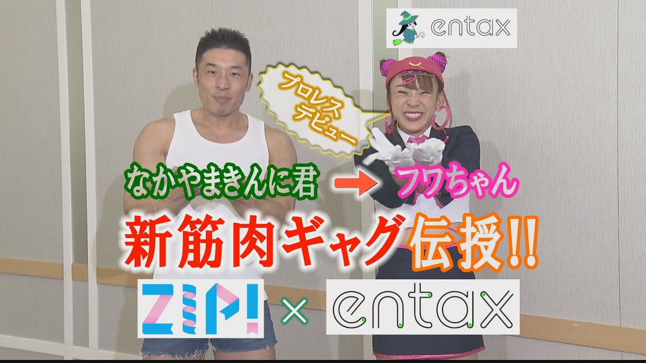 モバイルバッテリーシェアリングサービスの新業態発表イベントに公式キャラクターのタレント・フワちゃんと助っ人としてお笑いタレント・なかやまきんに君が登場。のっけからハチャメチャなその様子が18日の日本テレビ系朝の情報番組『ZIP!』で放送された。また単独インタビューでは、きんに君からフワちゃんに筋肉を使った新ギャグが伝授された。