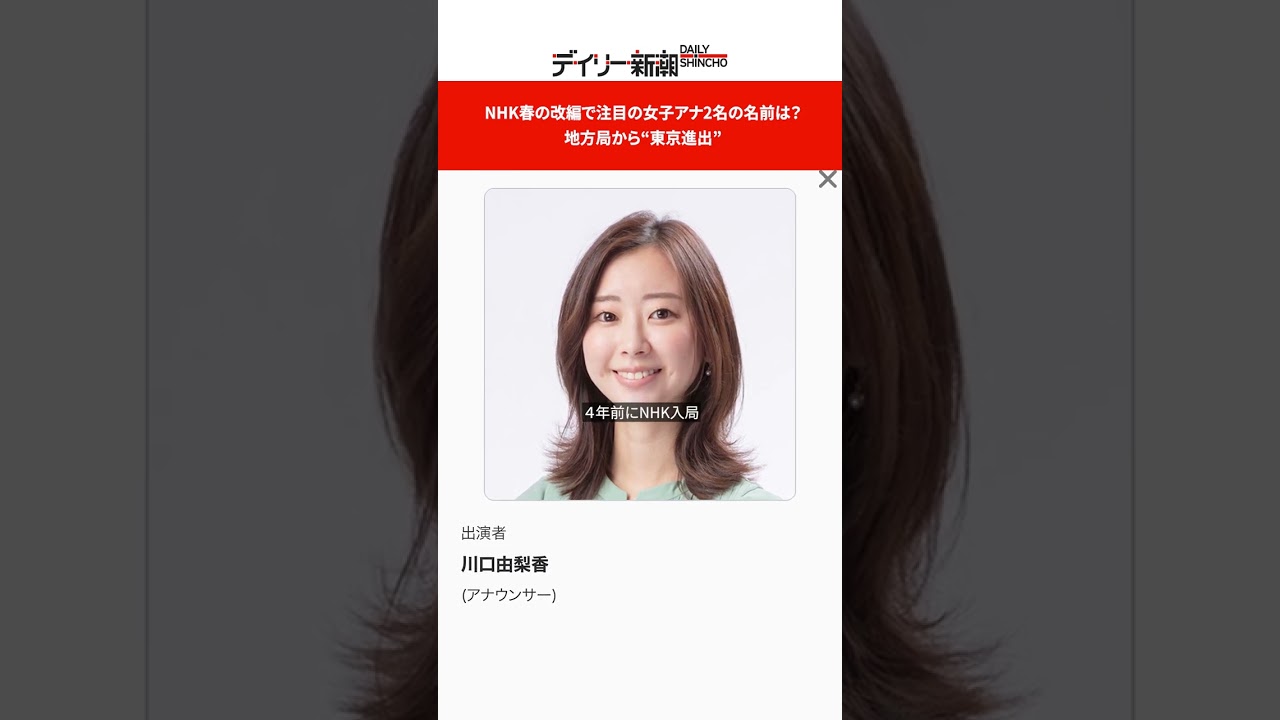 今年もNHKでは、春の改編で恒例となったアナウンサーの人事異動が行われる。なかでも注目されているのは、地方局から東京アナウンス室への移動、いわゆる“東京進出”を果たした女性アナウンサー2人だ。その魅力をご紹介する👇