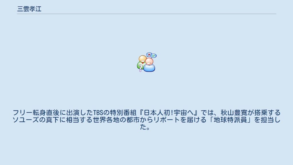 三雲孝江, by Wikipedia https://ja.wikipedia.org/wiki?curid=61222 / CC BY SA 3.0 #議論が行われているページ #TBSテレビのアナウンサー #フリーアナウンサー #日本のニュースキャスター #日本の司会者 #帰国子女 #1954年生 #存命人物 #上智大学出身の... -