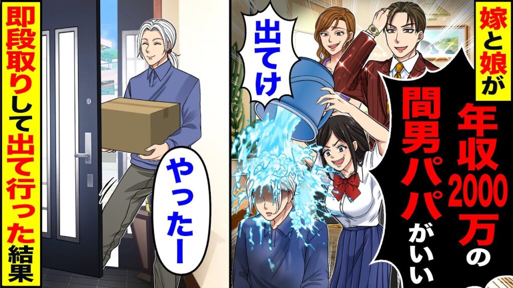【スカッと】嫁と連れ子が「年収2000万の間男パパが好き、出てけ」「ダサいジジイは不要」→「やったー」即断取りして笑顔で出て行った結果【漫画】【アニメ】【スカッとする話】【2ch】