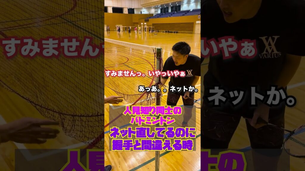 人見知り同士のバドミントン。ネットを直してるのに握手と勘違いする時【バドミントン ヴァリアス】