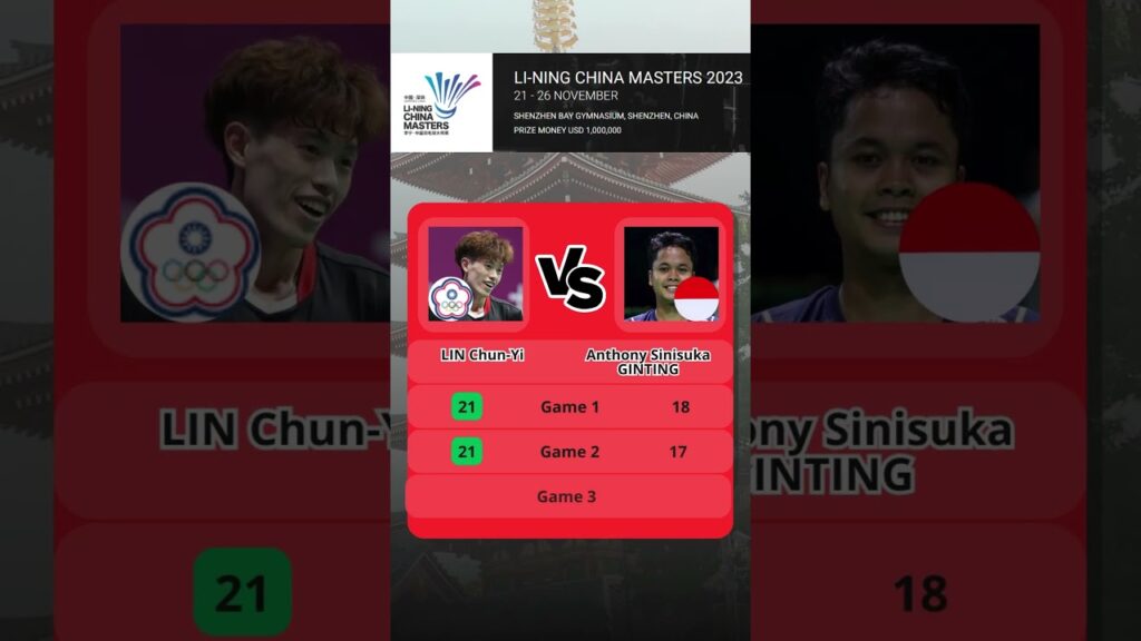 Anthony Sinisuka GINTING Vs LIN Chun-Yi / LI-NING MASTERS CHINA 2023 #badminton #badmintonchina